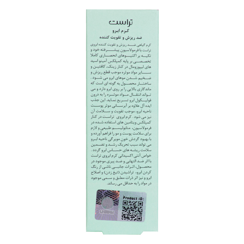 کرم گیاهی تقویت کننده ابروی تراست، با فرمولاسیون پیشرفته خود و تکیه بر مواد موثره خاص، موجب کنترل ریزش و ضخیم شدن موهای ابرو میشود. ساختار محصول به گونهای است که ماندگاری و اثر زیادی بر روی ابرو دارد و میتواند انتقال مواد موثره را به درون فولیکول ابرو تسریع کند. این جذب ایدهآل، علاوه بر آبرسانی موثر پوست ناحیه مورد نظر، موجب تقویت و سلامت ابرو نیز میگردد. از سوی دیگر مواد موثره گیاهی در کنار ویتامینهای استفاده شده، متابولیسم طبیعی و لازم برای پوست و مو را فراهم آورده و با بهبود خونرسانی محیطی میتواند سبب تحریک رشد و تضمین سلامت ریشههای حساس مو گردد.