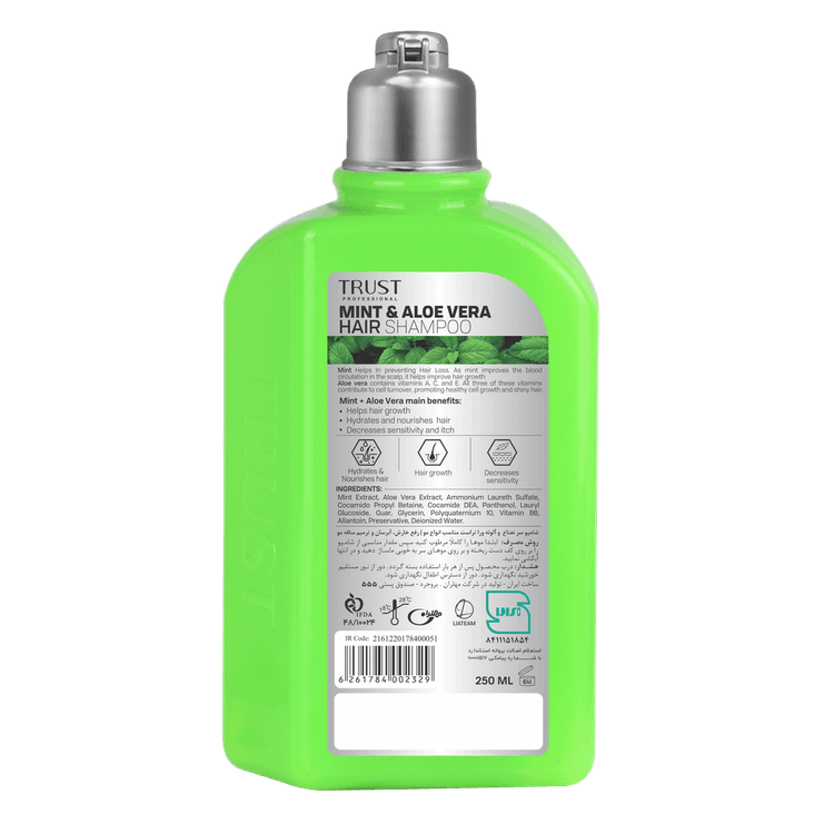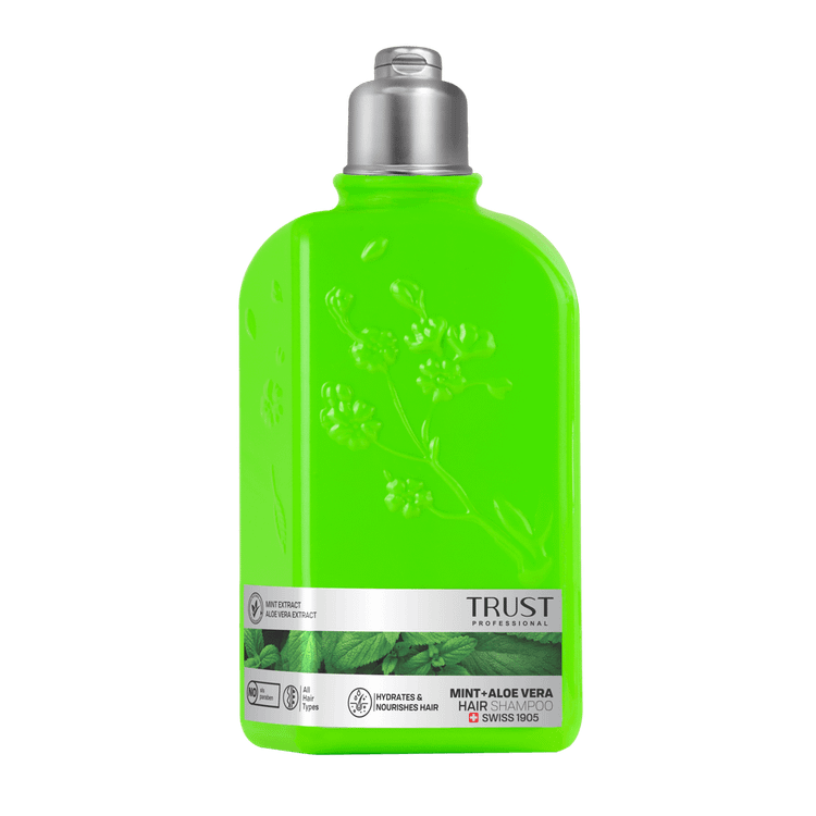 شامپو سر نعناع و آلوئهورا تراست، با وجود عصاره نعناع در ترکیبات خود، خشکی و خارش پوست سر را برطرف کرده و با داشتن خواص ضدباکتریایی و ضدقارچی، از بروز قارچهای ایجادکننده شوره جلوگیری میکند. همچنین آلوئهورا موجود در این محصول، ضمن آبرسانی پوست سر، موجب تغذیه و تقویت موها با ویتامینهای B12، E و C میشود.