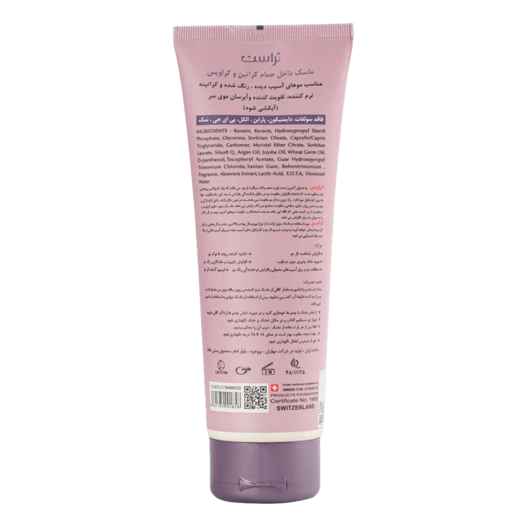 اگر جزو آن دسته افرادی هستید که موهای آسیبدیده، رنگشده و کراتینه دارند، به کمک این محصول، جدای از خاصیت آبرسانی و نرمکنندگی که دارد میتوانید کوتیکولهای آسیبدیده ناشی از رنگ مو و مواد شیمیایی را ترمیم کنید؛ همچنین با مصرف این ماسک مو، از تارهای موی سر شما در برابر اشعههای مضر خورشید و آسیبهای دستگاههای فیزیکی محافظت میشود و با تشکیل لایه نازکی بر روی مو ضمن روانسازی سطحی، مقاومت سطح مو افزایش پیدا میکند. با استفاده از ماسک موی آبکشی کراتین و کراویس، بر سطح تثبیت و ماندگاری رنگ روی مو اضافه شده و ضخیم و درخشان میشود. کراویس (یک کمپلکس پروتئینی چندمنظوره) و کراتین موجود در این ماسک مو، با نفوذ به درون کوتیکولهای مو و بالابردن سطح مقاومت آن، استحکام موهای آسیبدیده در اثر دکلره را تا سه برابر افزایش میدهد. این محصول بالاترین قدرت جذب و اثربخشی را برای تارهای مو به ارمغان آورده و موی سر شما را از ریشه تا نوک مو تغذیه میکند.