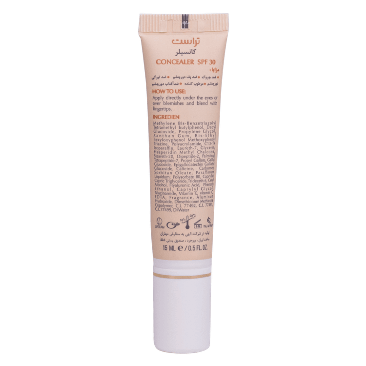 روش مصرف: پیش از اقدام برای آرایش صورتتان بهتر است آن را به کمک محلولهای پاککننده (میسلار واتر) تراست بسته به نوع پوستی که دارید (مختلط و چرب یا خشک و نرمال)، از هرگونه آلودگی پاک و تمیز کنید. سپس، زمانیکه نوبت به استفاده از کانسیلر برسد، میتوانید با خیالی آسوده گودی و سیاهی زیرچشمتان را با مقدار کمی از کانسیلر به صورت مثلثی یا نقطهای بپوشانید و آن را خوب ماساژ دهید؛ همچنین با ضربات آهسته انگشت حلقه یا براش نیز میتوانید به جذب سریعتر آن کمک کنید.