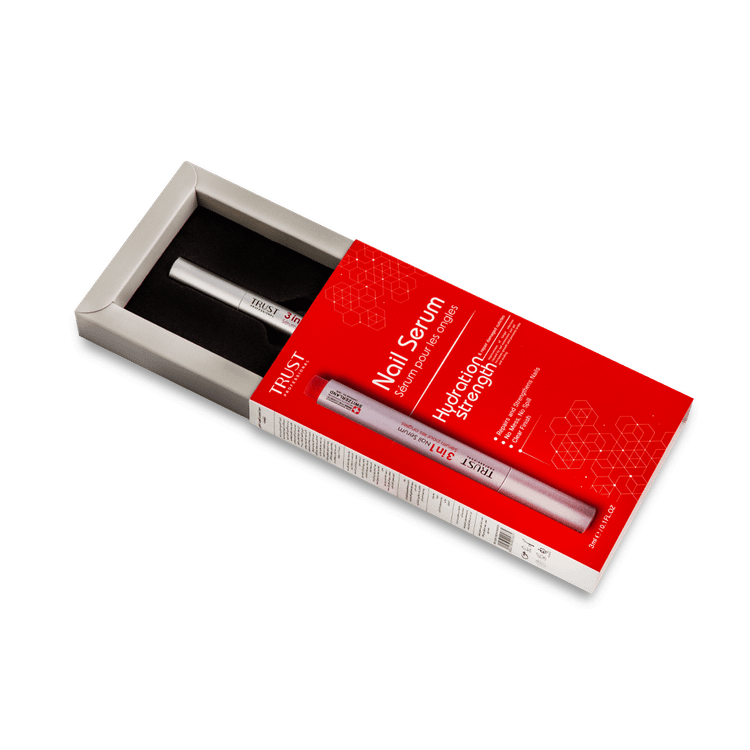امروزه اکثر مشکلات مربوط به ناخن که شامل شکنندگی، پوسته پوسته شدن ناخن و کوتیکول، بلند شدن صفحهی ناخن، ایجاد برجستگی و یا فرورفتگی در سطح ناخن، رشد نامناسب، عفونت، التهاب و قرمزی بافت اطراف ناخن در اثر آسیب به ماتریکس ناخن و یا کاشت و زیباسازی غیراصولی ناخن ایجاد می شود. بنابراین برای درمان یا رفع مشکلات ناخن میبایست از محصولات مراقبتی استفاده کرد که بتواند ناخنها را ترمیم و مستحکم کرده و یا در صورت وجود عفونت قارچی، به درمان آنها کمک کند. برای درمان شکنندگی ناخنها که با کمبود رطوبت در ناخن ایجاد میشود، میبایست از محصولاتی استفاده کرد که به میزان کافی سطح ناخن را آبرسانی میکنند. کراتین، پروتئین اصلی تشکیل دهندهی صفحه ناخن است. زمانی که به دلایل مختلف میزان کراتین در بستر ناخن کم شود و یا اتصالات بین رشته ها از بین برود، استحکام و یکپارچگی ناخن کم شده و ناخن شکننده یا پوسته پوسته (به اصطلاح پلیسه) میشود. بنابراین استفاده از محصولاتی که ساخت کراتین در ناخن را افزایش دهد، استحکام و سفتی ناخنها را بهبود میبخشد. سرم تقویت کننده ناخن سه در یک تراست با داشتن ترکیبات آبرسان و ویتامینهای موثر، استحکام و رشد ناخن را افزایش داده و به ترمیم آسیبهای کوتیکول کمک میکند. ترکیبات ضد قارچی موجود در این محصول، ضمن بهبود عفونتهای قارچی ایجاد شده در ناخن، التهاب بافت اطراف ناخن را بهبود بخشیده و با حفظ سلامت ناخنها، زیبایی ناخنهای را دو چندان میکند.