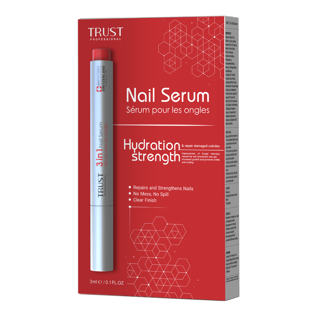 امروزه اکثر مشکلات مربوط به ناخن که شامل شکنندگی، پوسته پوسته شدن ناخن و کوتیکول، بلند شدن صفحهی ناخن، ایجاد برجستگی و یا فرورفتگی در سطح ناخن، رشد نامناسب، عفونت، التهاب و قرمزی بافت اطراف ناخن در اثر آسیب به ماتریکس ناخن و یا کاشت و زیباسازی غیراصولی ناخن ایجاد می شود. بنابراین برای درمان یا رفع مشکلات ناخن میبایست از محصولات مراقبتی استفاده کرد که بتواند ناخنها را ترمیم و مستحکم کرده و یا در صورت وجود عفونت قارچی، به درمان آنها کمک کند. برای درمان شکنندگی ناخنها که با کمبود رطوبت در ناخن ایجاد میشود، میبایست از محصولاتی استفاده کرد که به میزان کافی سطح ناخن را آبرسانی میکنند. کراتین، پروتئین اصلی تشکیل دهندهی صفحه ناخن است. زمانی که به دلایل مختلف میزان کراتین در بستر ناخن کم شود و یا اتصالات بین رشته ها از بین برود، استحکام و یکپارچگی ناخن کم شده و ناخن شکننده یا پوسته پوسته (به اصطلاح پلیسه) میشود. بنابراین استفاده از محصولاتی که ساخت کراتین در ناخن را افزایش دهد، استحکام و سفتی ناخنها را بهبود میبخشد. سرم تقویت کننده ناخن سه در یک تراست با داشتن ترکیبات آبرسان و ویتامینهای موثر، استحکام و رشد ناخن را افزایش داده و به ترمیم آسیبهای کوتیکول کمک میکند. ترکیبات ضد قارچی موجود در این محصول، ضمن بهبود عفونتهای قارچی ایجاد شده در ناخن، التهاب بافت اطراف ناخن را بهبود بخشیده و با حفظ سلامت ناخنها، زیبایی ناخنهای را دو چندان میکند.