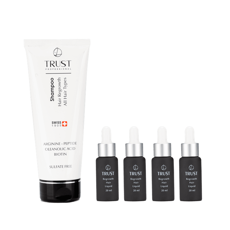 این کیت، مختص افرادیست که بارها از محصولات ضد ریزش موجود در بازار استفاده کردهاند اما نتیجه دلخواه خود را کسب نکردهاند! کیت تخصصی رویش مجدد تراست با استفاده از ترکیبات طبیعی، برای تاثیر گذاری بیشتر طراحی شده است و در مدت زمان 6 ماه، اثرات چشمگیری بر رشد مو خواهد داشت.