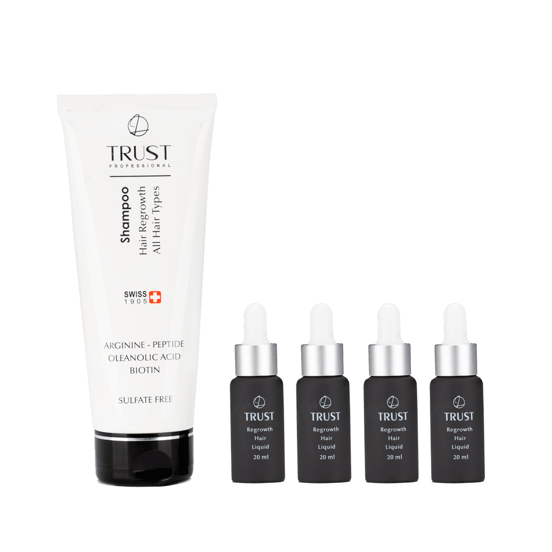 این کیت، مختص افرادیست که بارها از محصولات ضد ریزش موجود در بازار استفاده کردهاند اما نتیجه دلخواه خود را کسب نکردهاند! کیت تخصصی رویش مجدد تراست با استفاده از ترکیبات طبیعی، برای تاثیر گذاری بیشتر طراحی شده است و در مدت زمان 6 ماه، اثرات چشمگیری بر رشد مو خواهد داشت.